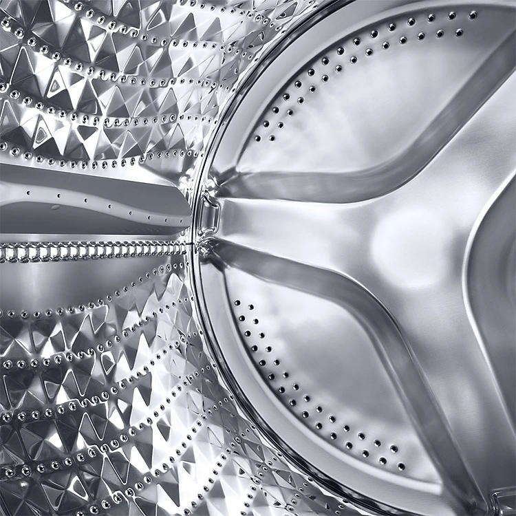 Chế độ Drum Clean tự động thông báo khi cần vệ sinh lồng giặt**. Nhanh chóng loại bỏ 99,9% vi khuẩn gây mùi*, giữ cho máy giặt luôn sạch sẽ như mới. Thông qua quá trình ngâm, rung và vắt ở tốc độ cao, lồng giặt được làm sạch nhanh chóng mà không cần sử dụng đến hóa chất.